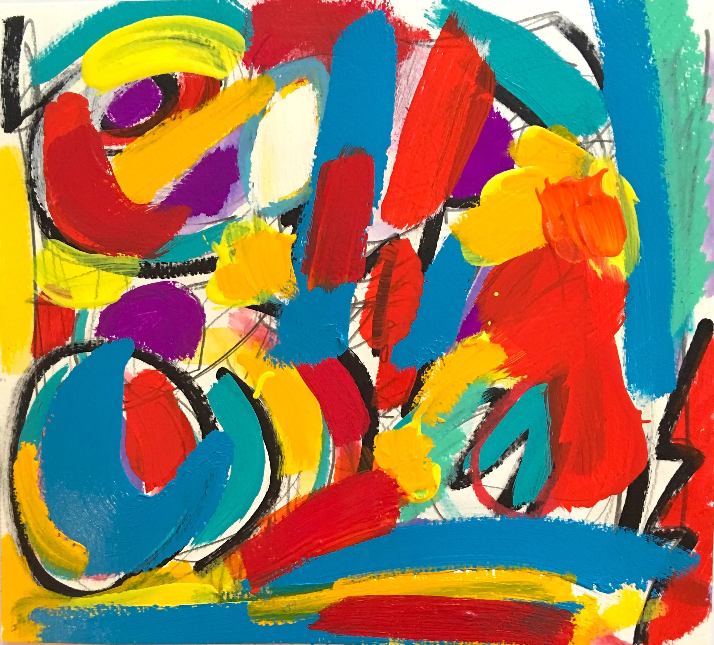 I started this project to challenge and motivate myself. The idea was to do a painting a day for 100 days. I decided to work on paper as opposed to canvas because I felt that I wouldn't take myself so seriously and would approach each piece more freely. Along with Acrylic paints that I use most of the time , I wanted to experiment with materials that I haven't worked with in a long time especially crayons and water paints. I am very interested in combining different textures on one surface. The main purpose was to stay out of my head, think as little as possible and just let the texture and colors be my guide. So here I am at day 50, the first milestone. I am so amazed by the profound affect this series has had on me. The challenge has been empowering. I am much more focused and committed to my art. My painting style has been freed up, a goal that I have been striving toward for a very long time. Stay tuned, I plan to go on to my final goal of 100 days. You never know what can happen if you just trust and let go.